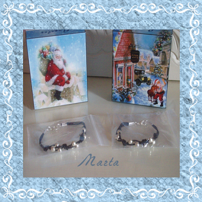 Estos son unos CD´s con unas láminas de Papá Noel que me gustan mucho, les he puesto alrededor un remate dorado y por detrás un papel de terciopelo rojo para que quedaran bien rematados.