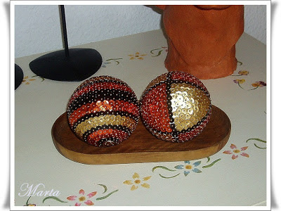 Esto lo vi en el blog de una amiga, es un bote de cristal decorado con unas etiquetas y la tapa forrada con tela y con un galón, lleva de adorno un corazón de pasta de sal.
