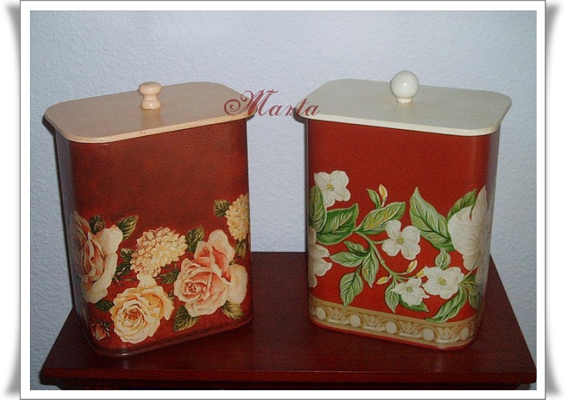 Las tapas las he pintado de un color claro que predomine en las flores y las he envejecido un poco.