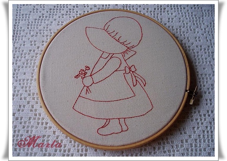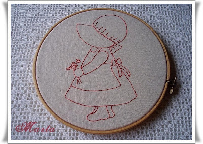 Este ha sido mi primer bordado en redwork, me ha encantado hacerlo, es muy fácil y queda monisimo, voy a hacer otro para tener la parejita y enmarcarlos.