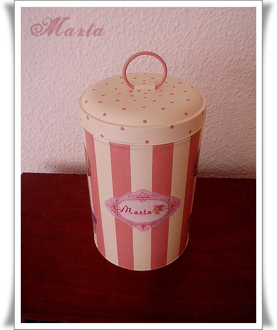 Tenía ganas de hacer una lata para guardar bien cerraditos los corazones de pasta de sal, he terminado ésta que tiene unos dibujos tildas.