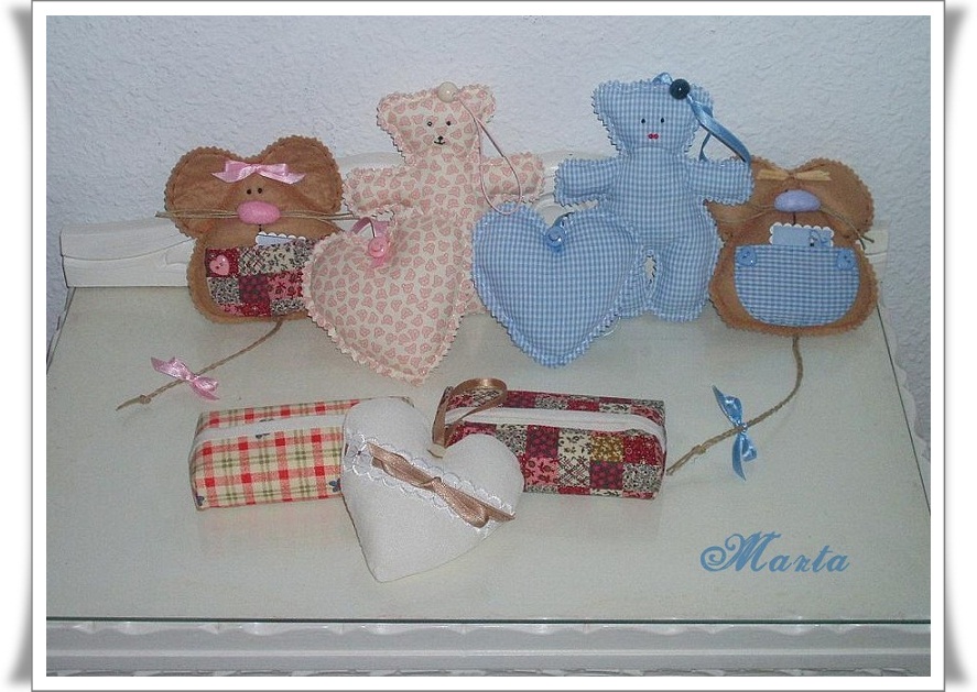 Estos son unos detallitos que hice para regalar, el plato y la vela se fueron para Perú y los muñequitos, portaklinex y corazón están en San Sebastian.