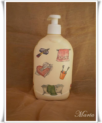 Un día vi un juego de baño que había hecho Cris, del blog Caixas de Pandora, le comenté que me había gustado mucho la servilleta y ella tan amable me la mandó entre otras muchas cosas. Ya te dí las gracias en su día pero ahora desde el blog te las reitero.