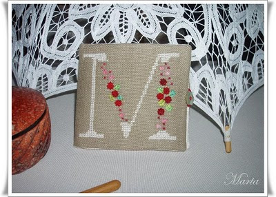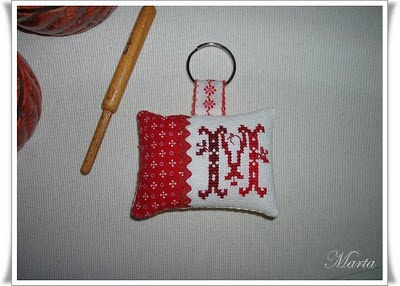 Tambien sabía que quería hacer un guardagujas y mirar que belleza me ha hecho, el bordado es ¡divino! He procurado hacer fotos muy de cerca para que se pueda apreciar bien, por dentro está igual de bonito, el llavero es una monada tambien, aunque ya le he dicho que no lo voy a usar de llavero, lo voy a colgar de adorno en un bolso pues está precioso y hay que enseñarlo.