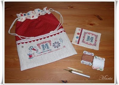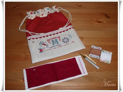 Hemos variado un poco la realización de la bolsa pues Reyes ideó aprovechar el bordado para hacer un bolsillo, creo que la idea fué buenísima y luce mucho más.