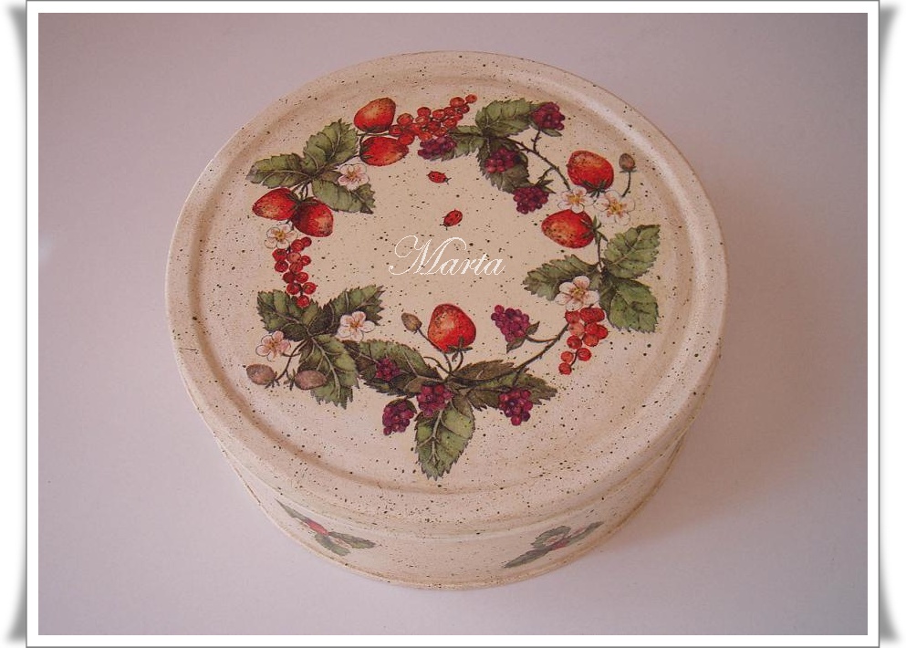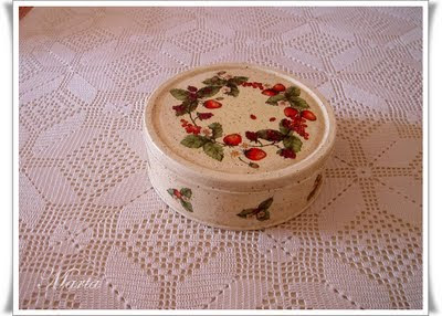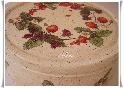 Ya de vuelta a la normalidad y terminadas las vacaciones os dejo una lata de galletas decorada con una servilleta que me encanta, tiene hecho un salpicado y finalmente envejecida.