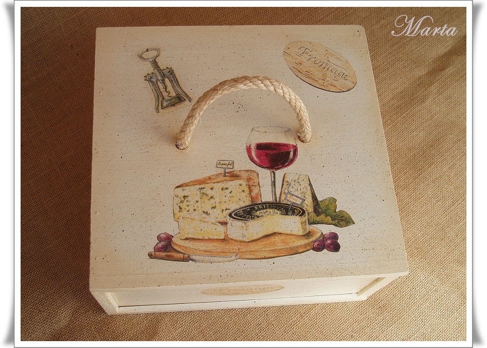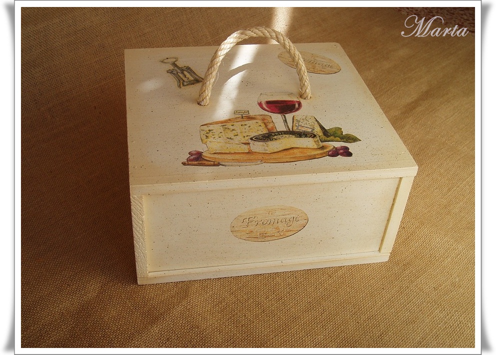Esta quesera me la trajeron unos amigos para que se las decorara, aunque os extrañe sí es una quesera, viene con su rejilla dentro y unos agujeros por debajo para que el queso se ventile.