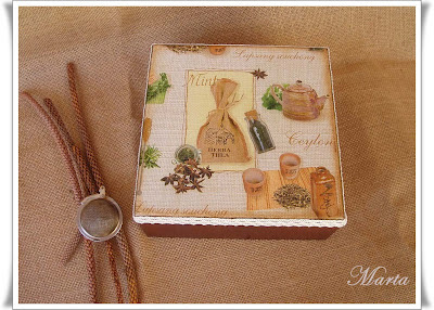 Esta bandejita con decoupage la hice para regalársela a Chari, nos conocimos la semana pasada, pasamos un ratito de charla estupendo y como si nos conociéramos de toda la vida.