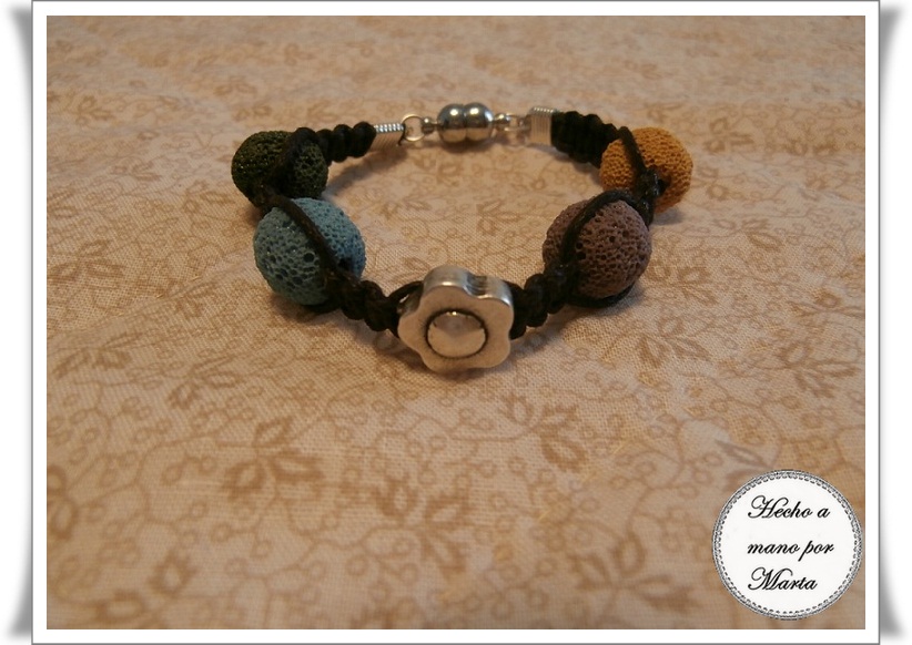Esta es del mismo estilo pero hecha con piedras volcánicas, les enseño una foto cerrada para que vean como queda el cierre de imán.