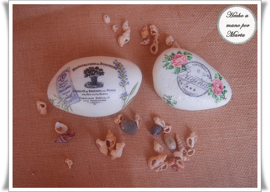 Estas piedras me las trajeron a ver si podía decorarlas, les hice un transfer y encima un pequeño decoupage y me parece que quedaron bonitas.