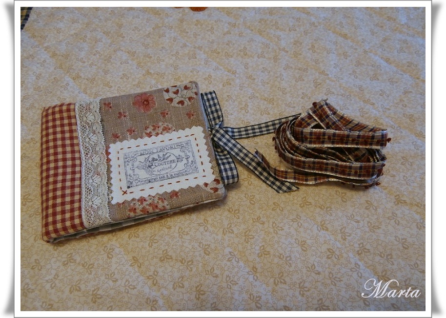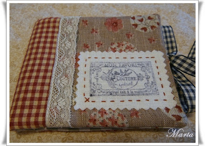 Este  guarda agujas tan maravilloso ha sido un regalo de Tania, nos hizo uno para cada una (Reyes, Fer y yo), con su estilo tan delicado, la combinación de telas y ese sello ¡divino!, la combinación resulta espectacular, la cinta también fue un regalo. ¡Muchas gracias por todo guapa!.