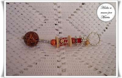 Este llavero lo hice para regalar, también se puede llevar colgado del bolso como adorno, como veis está personalizado con el nombre de su dueña.