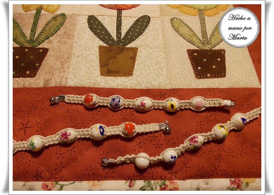 Son unas pulseras que combinan cuentas y macramé. El cierre es de imán y me parece comodisimo.