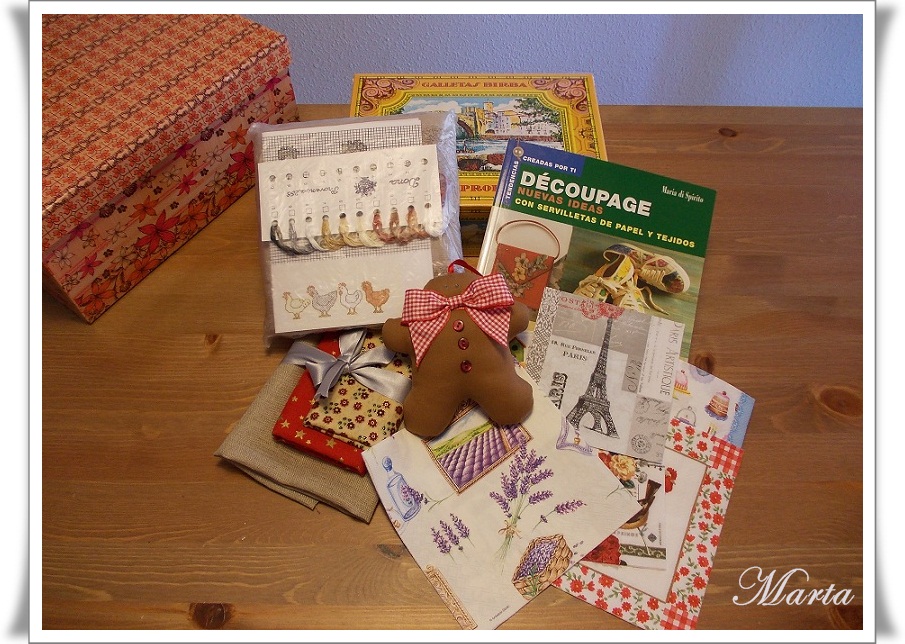 Por último quiero enseñarles el premio que me tocó en el sorteo que hizo Lourdes en su blog, fui la ganadora y recibí este paquete lleno de cosas preciosas y como ven con un empaquetado de lujo. Muchas gracias por todo Lourdes.